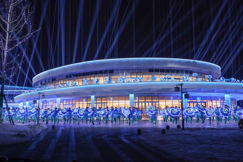 主舞台上,“天地矩阵”震撼亮相,地面数百人阵列光影流转。