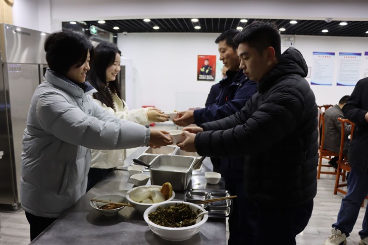 任楼煤矿职工食堂内暖意融融、香气扑鼻,“浓情元宵福满矿山”送元宵活动有序进行。工作人员早早到位,分工明确地进行煮制、分装、发放。职工们有序排队领取,工作人员一边递上热气腾腾的元宵,一边送上节日祝福,叮嘱大家注意安全、安心工作。一碗碗软糯香甜的元宵,让职工们脸上洋溢着幸福的笑容,“承载着矿井的关怀与牵挂,不仅尝到了节日的味道,更感受到了‘家’的温暖。”