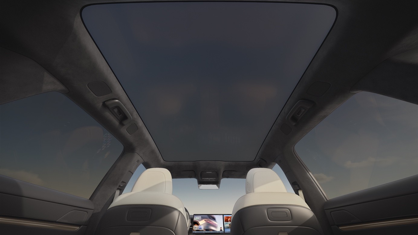 此外,与众08还配备1.74㎡智能调光天幕,支持10档语音及屏幕调节,透明与雾态切换小于1秒。最大遮光率99%,紫外线隔绝率达99.9%,为座舱带来通透开阔的视觉体验。
