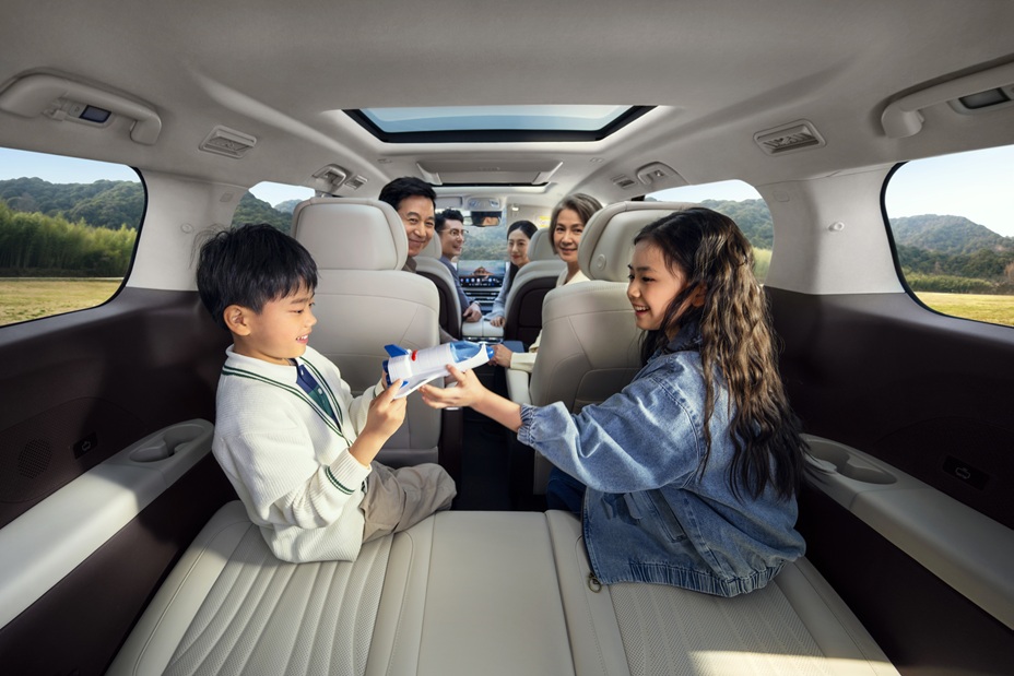全车93处声学包+5块双层隔音玻璃、米其林静音轮胎等,怠速噪音低于图书馆标准,120km/h时速下后排交谈依然清晰,关上车门,就是另一个世界。17.3英寸高清吸顶屏,后排秒变家庭影院;智能冷暖冰箱(-6℃~50℃),夏天冰镇饮料,冬天保温热饮;400mm超低地台(比同级低50mm)、549mm两级长扶手,老人、孩子甚至穿裙装的女士都能从容上下车。