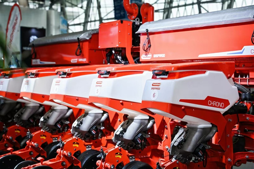 在硬核农机展区, 国内外知名品牌集结亮相。凯斯纽荷兰展出了搭载CVT无级变速系统的纽荷兰拖拉机,破解传统大马力农机在狭长地块灵活性不足的痛点;约翰迪尔带来了8R系列大马力拖拉机及S440联合收割机;潍柴雷沃展出了新款雷沃谷神收获机械及雷沃大马力拖拉机。此外,意大利马斯奇奥、道依茨法尔、日本洋马等品牌也携新款农机产品亮相,观众可一站看遍农机智能化作业的创新成果。