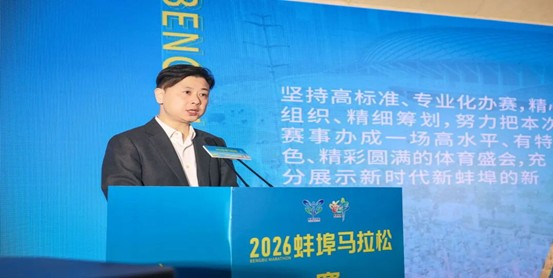 发布会上,蚌埠市人民政府副秘书长平云翔致欢迎辞。他表示,蚌埠作为淮河生态经济带中心城市,近年来经济运行稳中有进,创新动能加速集聚,文旅体融合不断深化,城市影响力和幸福感持续提升。即将到来的2026蚌埠马拉松,不仅是一场体育盛会,更是一次展示“淮畔明珠”魅力、传递珠城热情的城市行动。