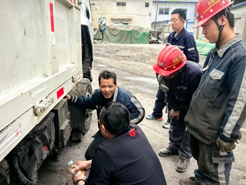 作者:李继峰 吴仁 厂家金牌师傅闫武斌(左一)现场传技艺 四月的黄土高原,春风仍带凉意。中煤三建三十工程处肖家洼项目部停车场上,厂家技术专家闫武斌蹲在刚升井的防爆胶轮车前,耳朵紧贴气动继动阀:晓荣,听听这排气声,是不是比正常泄气声长了半秒?修车师傅张晓荣凑近细听,试探着说:闫老师,好像慢了点,是阀芯回位卡滞吗?闫武斌点头赞许。这一幕,正是