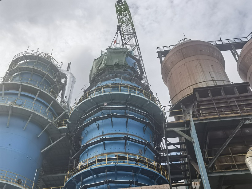 6月30日,由上海宝冶集团有限公司承建的梅钢二号高炉1#热风炉安全改造项目热风炉炉壳拱顶段吊装顺利封顶。热风炉是高炉炼铁工艺的核心设备之一,1#热风炉炉壳施工项目的圆满完成作为重要的工程节点,标志着该项目正式进入耐材施工阶段,为后续9月底热风炉投入使用打下了坚实的基础。