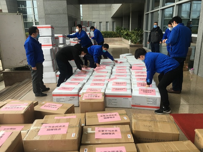 此外,在2月21日上午,根据安徽省国资委的统一安排,安徽叉车集团及时组织人员车辆,将省国资委协调有关省属企业紧急调配的5万只医用口罩,连同集团公司捐赠的2000套防护服装车运往合肥火车站,通过安徽省红十字会,迅速发往湖北省黄石市,支援黄石市国资系统抗击新冠肺炎疫情。