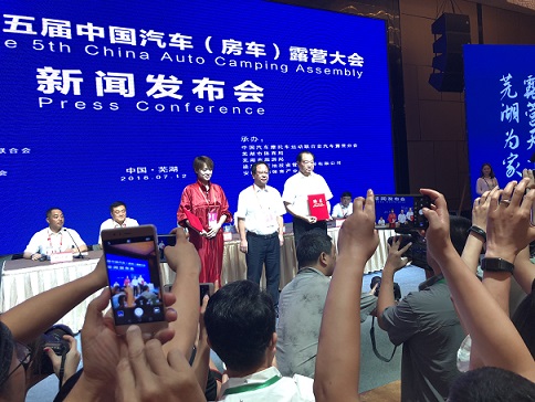 7月12日上午,记者从第五届中国汽车(房车)露营大会新闻发布会上获悉,本届大会将于2018年11月2日—5日在安徽省芜湖市举办。中国汽车摩托车运动联合会主席詹郭军、安徽省体育局局长高维岭、安徽省旅游发展委员会副巡视员许建民、中共芜湖市委副书记、市长贺懋燮等各级领导出席了发布会。新华社、人民日报、中新社等近百家媒体与会并参与报道。