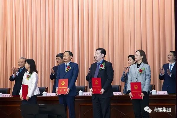 海螺集团荣获了本次大会奖项“大满贯”:“水泥生产全流程智能制造关键技术研发及推广应用”、“水泥窑烟气碳捕集纯化关键技术的研发与工程化应用”两个项目荣获安徽省科学技术进步一等奖,集团公司获批“绿色建材与高端制造安徽省技术创新中心”,海螺水泥总经理吴斌荣获第三届“安徽省突出贡献人才”表彰。海螺集团党委委员、副总经理汪鹏飞、何承发,海螺水泥总经理吴斌等代表集团公司接受表彰。