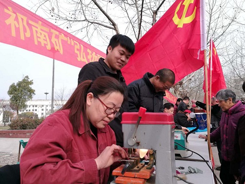 3月3日,安徽淮北矿业祁南矿党委组织30余名党员志愿者来到工人村,免费为群众磨刀、磨剪子、配钥匙、修家电、修理盆和雨伞,解决困扰群众的小问题。该矿党委紧密结合“两学一做”学习教育,组织开展形式多样的主题实践活动,着力增强党员的宗旨意识,弘扬无私奉献精神。图为,该矿一名志愿者正在为工人村居民配钥匙。