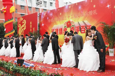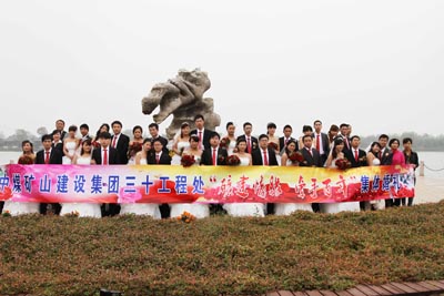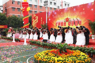 10月16日,中煤矿建三十工程处在该处文化广场为21对新人举办了隆重喜庆的集体婚礼,婚礼以“矿建情缘 牵手百年”为主题。淮北市总工会、淮北市妇女联合会、淮北团市委领导应邀参加了仪式,中煤矿山建设集团及各工程处的工会主席、近千名职工及职工家属和市民现场见证了新人的婚礼。21对新人中,大部分为该处此前三次联谊活动结出的硕果。仪式现场,新人们交换信物、分享蛋糕、开启香槟、交杯共饮等仪程充满温情浪漫,不时爆发热烈的掌声,祝福声和礼炮声不断。仪式结束后,该处还专门举行了婚宴和旅游采风,赢得了新人和新人父母的好评