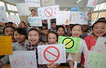 5月27日,在合肥市瑶海区铜陵新村小学,孩子们展示着手中自己亲手制作的各种“禁烟”宣传牌,宣传吸烟有害健康,拒绝吸烟。来自社区卫生服务中心的医生向孩子们介绍吸烟对青少年健康产生的各种危害,告诫他们珍爱生命,远离烟草。当日,在5月31日第26个“世界无烟日”即将来临之际,合肥市瑶海区铜陵路街道联合辖区卫生服务中心,在合肥市瑶海区铜陵新村小学内开展“珍爱生命 远离烟草”的世界无烟日主题活动,活动中,孩子们展示自己动手制作的“禁烟”宣传牌,宣传吸烟有害健康,拒绝吸烟,来自社区卫生服务中心的医生向孩子们介绍吸烟对青少年健康产生的各种危害,告诫他们珍爱生命,远离烟草,倡导积极向上、健康文明的生活方式。