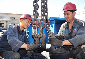 安徽淮北矿业朱仙庄矿推行风险预控管理以来,形成了以风险的事前管理为理论指导,以风险认识为基础,以风险控制为核心,以风险信息管理为平台,以风险预警为预控管理模式,实现了由“事后管理向事前管理”的转变,大幅降低了事故发生概率,确保了矿井安全生产。图为,朱仙庄煤矿职工正在对起吊钩进行风险确认。