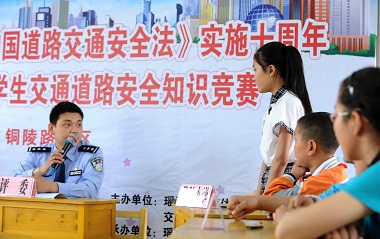 当日,正值《中华人民共和国道路交通安全法》颁布实施十周年之际,合肥市瑶海区教育体育局联合交警支队瑶海大队、瑶海区铜陵路街道共同开展以“构建法治交通、平安交通”为主题的瑶海区中小学生道路交通安全知识竞赛。竞赛内容涵盖了交通安全法律法规、交通手势信号、交通标志标牌标线识别等方面知识。通过比赛让广大中小学生全面地了解和掌握了道路交通安全法律法规及安全出行常识,自觉遵守《道路交通安全法》,抵制各种危险交通陋习,提高交通安全意识和自我保护能力。 - 上一篇:淮北矿业铁运处党建领航助推企业科学发展
