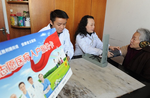 当日,合肥市瑶海区胜利路街道与安徽省立医院医院大外科党总支开展医疗志愿服务进社区共建活动,活动中,医疗志愿者走进困难重病家庭中,为老人进行全面的义务诊疗,并送上志愿医疗服务联系卡进行一对一的服务。据悉,这些医疗志愿者们将定期深入社区为困难重病家庭提供一对一、面对面的上门帮扶服务,同时利用业余时间深入居民区开展心理辅导、义诊帮扶和健康宣教等活动。 - 上一篇:合肥市瑶海社区“红灯笼”宣传核心价值观