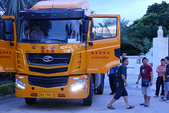 今年以来,华菱港口牵引车加快了进入市场的步伐,先后在宁波、青岛、深圳、福州和厦门等著名港口攻城略地,取得不俗的销售业绩,其中汉马H6系列增长迅速,自主开发的汉马动力总成也深受各地用户欢迎,在海口港也迅速打开市场。日前,仁建集团海南公司、海南亮健物流运输贸易有限公司、友顺运输车队、海口鑫吉泰物流运输有限公司等物流企业采购了近50台物流车,其中包括35台LNG牵引车。活动现场,还举行了交车仪式,东翼翔集团总经理杨翔将金钥匙交到仁建集团海南公司、海南亮健物流运输贸易有限公司、友顺运输车队、海口鑫吉泰物流运输有限公司相关负责人手中。