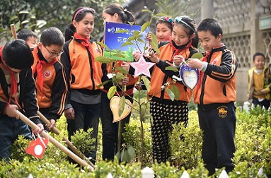 【解琛合肥报道】3月11日,在合肥市瑶海区进城务工随迁子女定点学校--隆岗小学,小学生们种下象征同学友谊的小树苗,并挂上写有祝福的爱苗心愿卡。