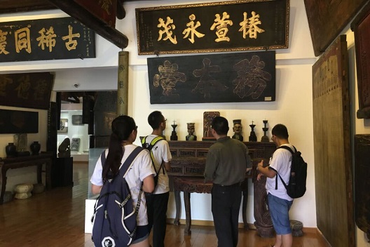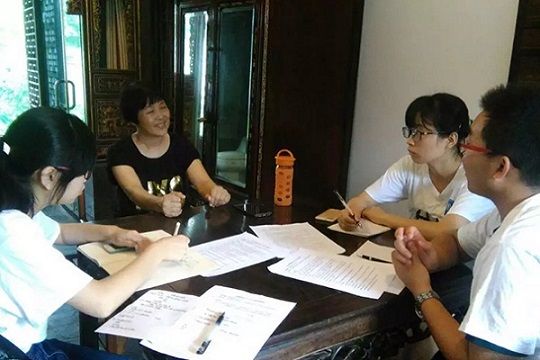 7月7日,团队首先赴源泉徽文化民俗博物馆(以下简称源泉博物馆)进行采访调研,具体了解非国有博物馆在“互联网+”方面的进展与困难。团队于上午到达源泉博物馆,对馆长宣繁秋及馆长助理进行专访。馆长主要介绍了目前源泉博物馆发展现状及互联网利用情况。“目前本馆参观的游客以学生及老年人为主,人数约占百分之九十,我们针对这种情况,会举行一些特色活动,如徽州民俗婚礼、书院讲的公开课等等。”谈到对外宣传方面,宣馆长提出:“本馆传统手段与网络手段都有使用,双管齐下。但网络手段主要通过博物馆名义发论文、投稿,效果不理想。”专访结束后,馆长助理带领团队成员参观馆内文物,并邀请他们参与博物馆近期录制的宣传视频。
