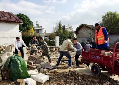 为着力提升美好乡村的“颜值”,让广大群众充分享受到获得感与幸福感,连日来,怀宁县组织机关干部深入各中心村庄,采取分组包片的方式,开展乱堆乱放、房前屋后环境排查工作。图为,11月10日,该县凉亭乡的机关干部在磨山中心村清除柴草与砖块等杂物。