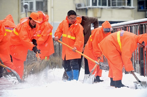合肥市瑶海区环卫工人除积雪保畅通