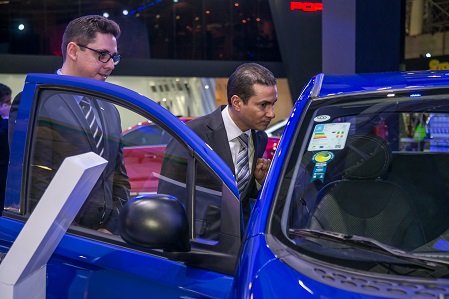 在奇瑞展台现场,巴西工业和商业部长Marcos Pereira先生一行驻足参观。Marcos Pereira先生对 Tiggo2(瑞虎3X)给予高度赞赏和殷切期望,并表示:很高兴在巴西看到了这么好的车,希望奇瑞能将更多、更好的产品引入到巴西。