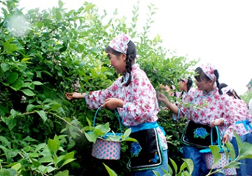眼下正是蓝莓采摘的黄金时节,每天前往“安徽蓝莓第一镇”——怀宁县黄墩镇观光休闲的游客络绎不绝。该县为此因势利导,组织篝火晚会、风车展览、摄影比赛等相关活动,使得蓝莓采摘成为该县发展乡村特色旅游的一张靓丽“名片”。图为,一群刚刚参加完文艺演出的小姑娘,在久越蓝莓基地体验采摘的乐趣。