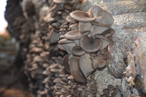 在红星村村民刘代宽家走访时,他正在自家的大棚里忙碌着,大棚里满是已经长成的蘑菇菌。