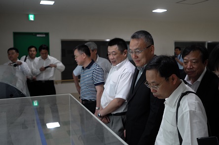 工厂垃圾处理线融合了川崎重工业最先进的处理设备:设有2台150t/d的垃圾气化焚烧炉及2台60t/d的灰熔融炉,一套6750 kW的汽轮发电机组。工厂设有专业的参观通道,可供外来人员参观整个工厂的垃圾处理过程。考察团一行从垃圾运进、投料和监控等方面进行了实地察看,他们在听取介绍的同时还将每个关键环节拍摄下来。