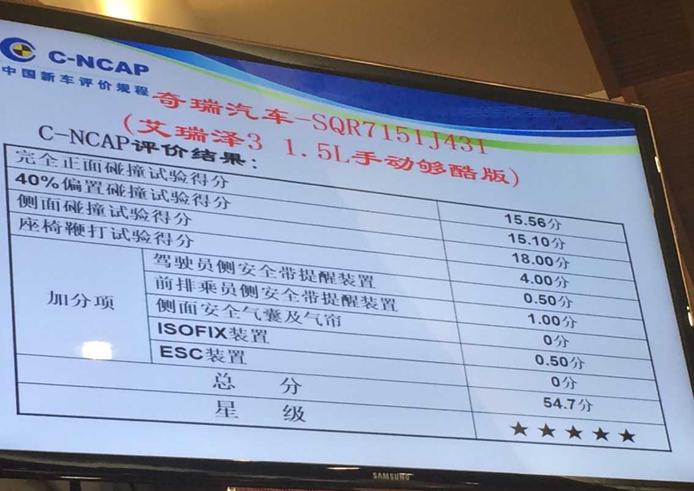 奇瑞艾瑞泽3斩获C-NCAP碰撞安全五星评价