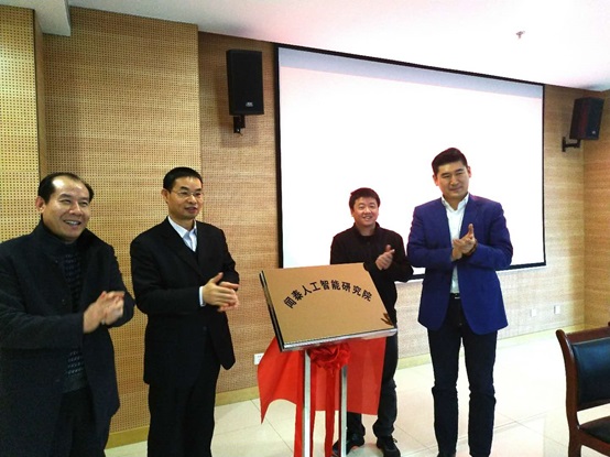 合肥高新区工委书记、管委会主任宋道军(左二)、闻泰科技董事长张学政(左三)为闻泰人工智能研究院揭牌