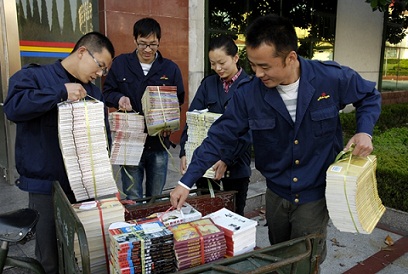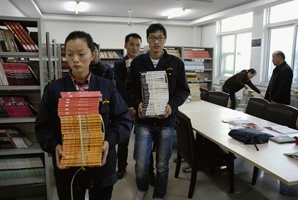 为丰富基层职工业余文化生活,近日,安徽淮北矿业铁运处工会把一千余本书籍及时发放到基层各单位,充实基层单位书屋,让职工在业余时间享受文化大餐。图为,基层单位领取发放书籍。